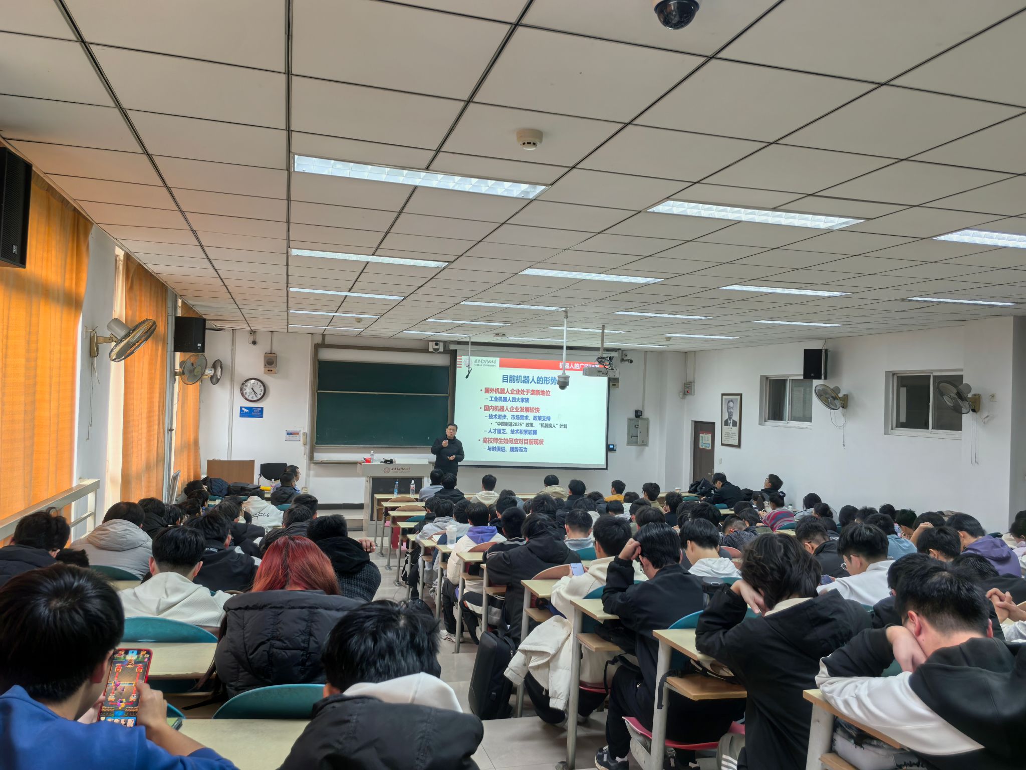 报告最后,訾斌教授与同学们进行了深入的交流,就机器人技术应用、发展前景等方面的问题与同学们进行了深入探讨。本次报告内容翔实、富有启发性,极大地拓宽了同学们的视野,提升了同学们对机器人技术的认知和兴趣,激发了同学们对机器人工程专业的热情,激励大家积极投身于机器人这一国家科技创新的重点领域,为国家机器人产业发展作出积极贡献。