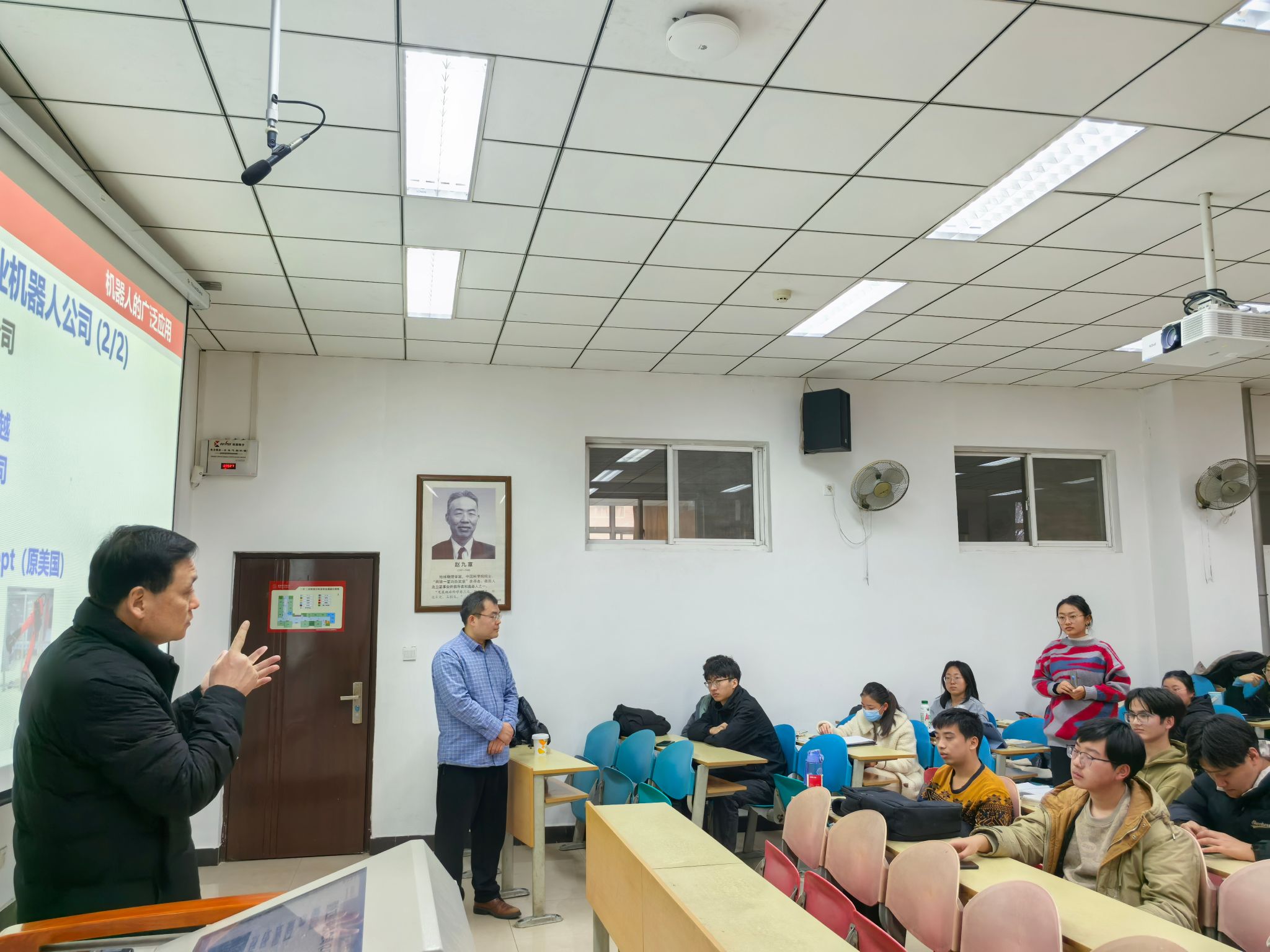 訾斌教授还向同学们提供了国内外机器人研究领域的网站、期刊和书籍等学习资源,从科研机构、高校和公司三个维度展开介绍机器人的最新发展动态。尤其特别强调,从事机器人研究工作,对于学生个人就业而言具有就业面广的优势。最后,分别从机器人的历史,机器人的定义、分类和应用,机器人的发展等方面作了详细介绍。
