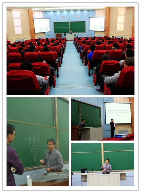 23日下午,刘兑现教授在北校区教学楼J112教室做了题为“Antenna-in-Package Solutions for 60GHz Phased-Array Systems”的学术报告,刘兑现教授在报告中详细介绍了60GHz毫米波在无线传输中的应用、优势和目前国际上的研究状况,讲授了其天线各模块的设计、材料、结构、工艺等软硬件关键技术,并对该领域技术未来的发展方向做了展望。3499cc拉斯维加斯200余名师生参加了本次报告会,并在报告会上与刘兑现教授进行了学术交流。