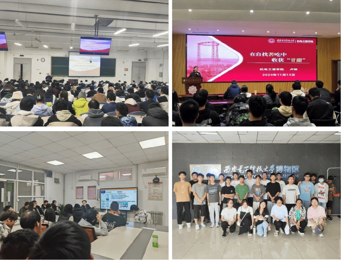一是开展系列专业教育主题报告会,提升专业认知。新生入学之初,组织开展2024级自动化类新生家长见面会,为新生和家长们详细介绍了学院的发展历程和科研成果。通过展示FAST 500米口径射电望远镜、“逐日工程”等项目的成就,展现学院在专业建设和科研应用方面的突出成绩,并介绍了自动化大类七个专业的特点及其课程设计逻辑,系统化展示自动化类学科特色、教育理念。入学之后,学院院长为全体新生作题为《智能制造技术发展 赋能创新人才培养》的报告,为大家详细讲述了智能制造技术发展的现状、趋势以及工程教育的变化和人才培养模式,并就培养创新思维、提升就业竞争力等话题与大家深入探讨,提升新生的专业认同及情感认同。组织210余名新生参加陕西省第六届丝绸之路青年学者论坛——机电耦合与智能制造分论坛,引导学生了解高端装备制造过程中的机电耦合机理、智能感知、监督控制等前沿专业理论与核心技术。依托周点名组织辅导员开展生涯规划教育3场,为新生解读四年规划。辅导员设置每周生涯咨询日,解答同学们在大学学习生活遇到的困惑,平均每周接待主动咨询学生40人次。二是组织班主任和各专业骨干教师为15个新生班级开展专业导航课。从学院人才培养方案、机电类专业特色、专业课程体系、职业规划和岗位面向等方面进行深入讲解,帮助新生正确认识专业性质和学科特点,明晰专业未来发展方向和就业前景,做好职业理想与发展目标的前置。开展本科学籍管理规定讲座,帮助新生依据学籍管理规定中的毕业要求和条件,制定合理的学习计划。三是组织新生参观国重实验室、大工程大项目以及往届优秀毕业生毕业设计作品,感受专业浓厚的实践氛围。组织新生参观“高性能电子装备机电集成制造全国重点实验室”、封装制造实验室等科研场所12场,在“逐日工程”试验场了解中国天眼模型中的“西电智慧”与“西电方案”,以及“逐日工程”项目的背景与意义。鼓励同学们在仰望星空的同时,做到脚踏实地。通过项目科研人员的讲解,结合教师自身的学习经历,指导学生如何在学习与课外活动之间找到平衡。在工训中心组织学生参观学习往届优秀毕业生毕业设计作品,增强学生专业学习兴趣,为学生学有所长、学以致用打下良好基础。