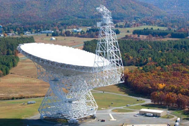 GBT (Green Bank Telescope):绿岸望远镜,简称GBT,是目前世界上最大的单口径全可动射电望远镜,于2000年建成,位于美国西弗吉尼亚州的格林班克(Green Bank),隶属于美国国立射电天文台(NRAO)。GBT总重量为7856吨,高约146米,工作在0.29~115.3GHz频段。天线口径为100×110米,整个反射面采用了偏置格里高利式设计,由2004块面板拼接而成,由2209个促动器驱动,经主动面调整后,整体面精度可达0.25毫米,指向精度可达2.7角秒。