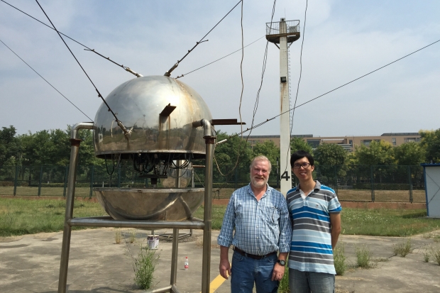 Dennis教授就FAST 50米模型的一些细节与实验室成员进行了热烈的交流与讨论,并表示:“FAST望远镜馈源的柔性支撑与精密定位是非常艰巨的任务,段院士团队对于该结构的设计与想法十分新颖,该工程的实现将是非常了不起的事情。另外,南校区这个实验场地非常好,有利于社会科普与科研实践。