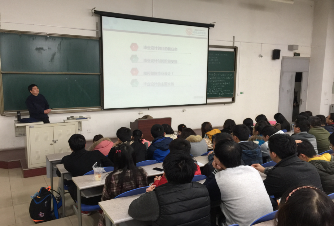 (通讯员 刘雨晗)为进一步提升本科生毕业设计质量,使学生深入了解毕业设计工作的目的及意义。11月20日下午,由教务处和3499cc拉斯维加斯共同举办的“2012级本科生毕业设计动员报告会”在南校区B-537教室举行。报告会由教务处实践科胡晓娟老师主持,由3499cc拉斯维加斯朱敏波教授主讲。3499cc拉斯维加斯2012级近300名本科生参加了此次报告会。