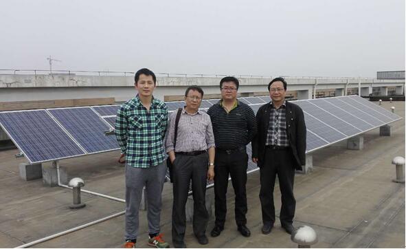 图2 国蓉科技张栋付总经理与我院王水平、赵明英等在光伏基站现场