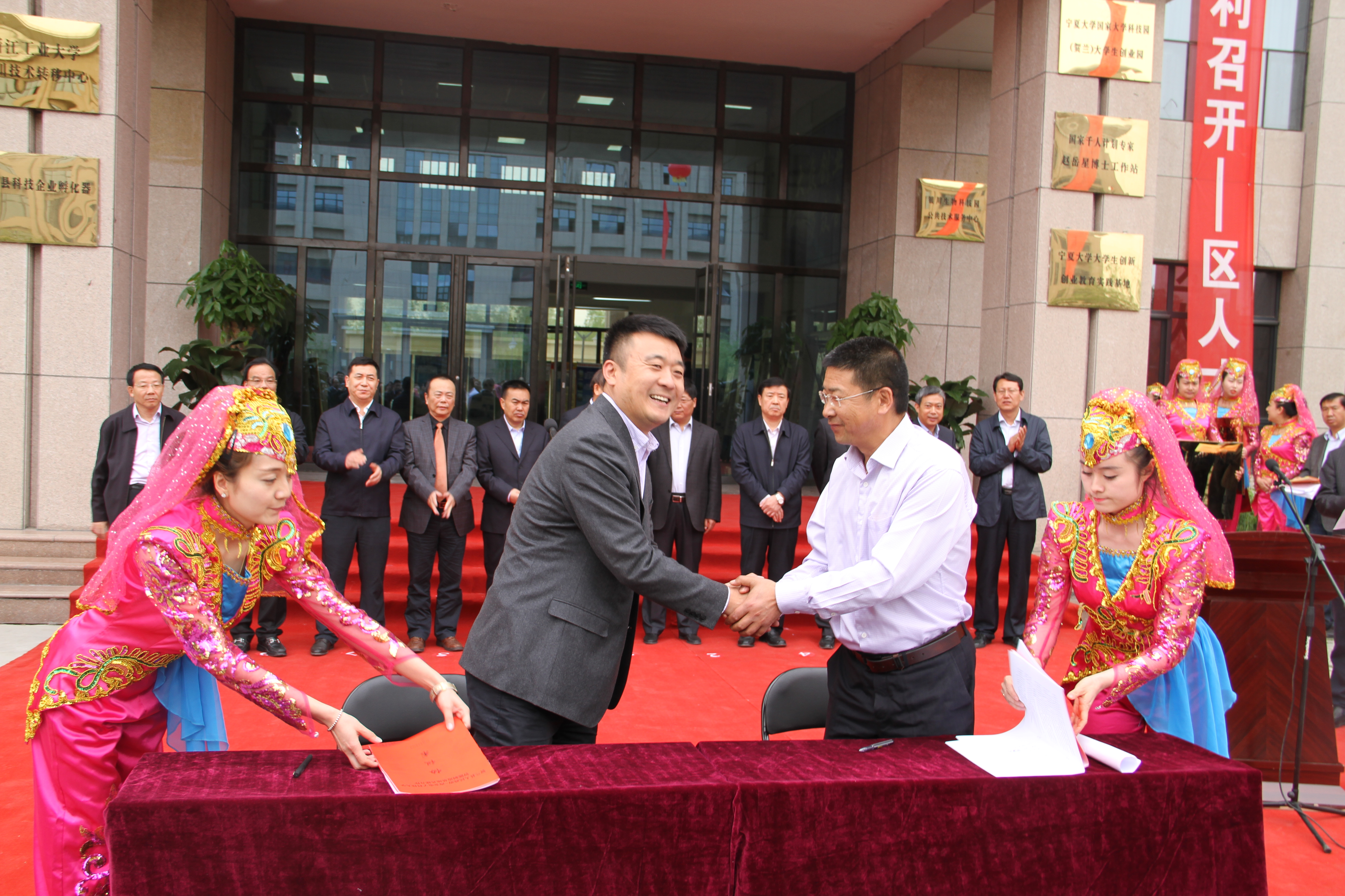 陈波副书记代表3499cc拉斯维加斯与银川市贺兰县签订了智能制造基地共建合作协议,史琳副院长代表学院为3499cc拉斯维加斯银川科技成果转移中心暨3499cc拉斯维加斯银川智能制造基地授牌。