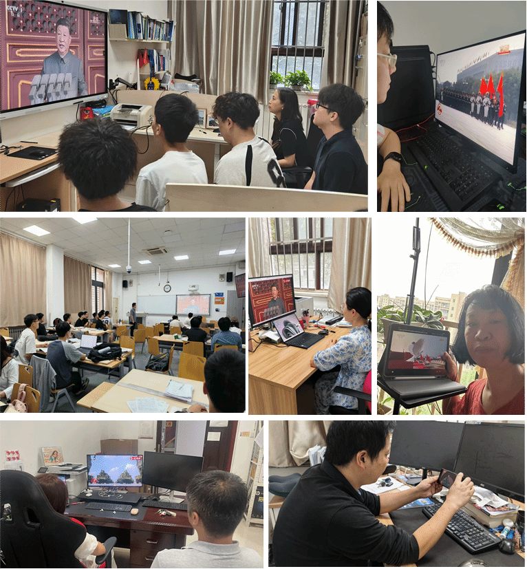 工业设计系党支部组织全体党员在会议中心203集中观看了纪念中国人民抗日战争暨世界反法西斯战争胜利80周年阅兵式,认真聆听了习近平总书记的讲话。各位党员内心无比激动与自豪,深受教育和鼓舞。整齐划一的方阵、威武雄壮的装备,展现了国家强大的国防力量和现代化建设的辉煌成就。这场国家盛典集中展现了在党的坚强领导下我国国防和军队现代化建设的伟大成就,彰显了中国特色社会主义制度的巨大优越性。习近平总书记的重要讲话高屋建瓴、振奋人心,深刻阐述了国家发展的伟大成就和光明前景,强调了坚持党的领导、走中国特色社会主义道路的极端重要性。这使我们更加坚定了理想信念,增强了民族自豪感和时代使命感。总书记的讲话为我们指明了前进方向,注入了强大精神动力。我们全体党员要将其转化为扎根教育一线、为党育人为国育才的实际行动,切实发挥党支部战斗堡垒作用,引领师生坚定理想信念,为实现中华民族伟大复兴的中国梦贡献教育者的力量。