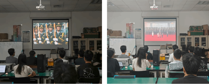 本科实验教学中心党支部的教师们组织实验室学生一起集中观看了此次大会,内心的震撼与自豪难以言表。支部书记章云说,历史告诉我们,关键技术是买不来的,安全和尊严是乞讨不到的。本次阅兵式武器装备全产业链的自主研制,体现了中国国防科技工业的整体飞跃,凝聚着无数科技工作者的智慧与心血,是几代人十年如一日科研攻坚的创新成果。本次阅兵,是一堂缅怀历史、展望未来的国防教育思政课,我们身为党员教师和科研工作者,要不断提升科技认知、创新与运用能力,把论文写在祖国的大地上,以严谨认真的科学态度,脚踏实地的工作作风,努力在各自领域做出实实在在的创新贡献。