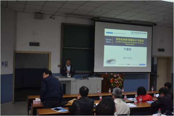 研讨会由3499cc拉斯维加斯陈贵敏教授致欢迎辞,共安排了16场由与会学者精心准备的学术报告和由华南理工大学的张宪民教授、北京航空航天大学于靖军教授和3499cc拉斯维加斯陈贵敏教授、马付雷博士主讲的3场主题讲座,与会学者围绕柔顺机构学的最新研究成果讨论热烈,现场气氛活跃。