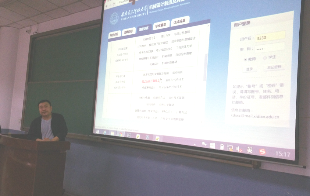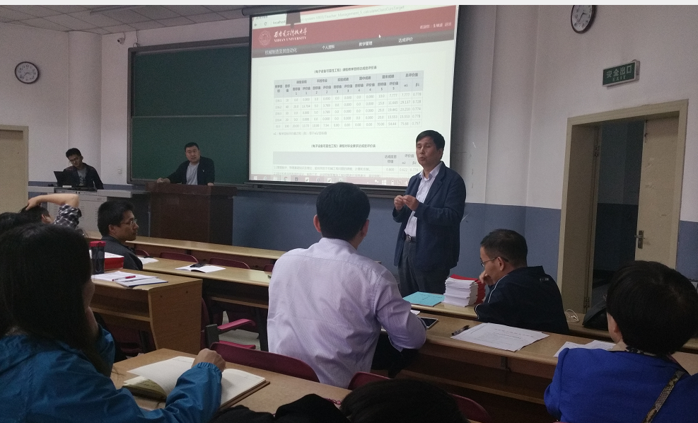 会上,首先由朱敏波教授从总体上介绍了专业毕业要求达成度评价的意义和必要性,之后由仝勖峰老师详细介绍了“本科教育培养过程与达成度评价”软件平台的功能及使用方法,其中包括课程大纲制订、课程评价的设计、课程达成度评价实现等模块的应用。参会教师积极讨论并对课程达成评价工作提出了许多有益的建议。最后,李团结副院长对培训会议进行了总结,对今后推进“机械设计制造及其自动化”专业认证工作提出了指导性意见。