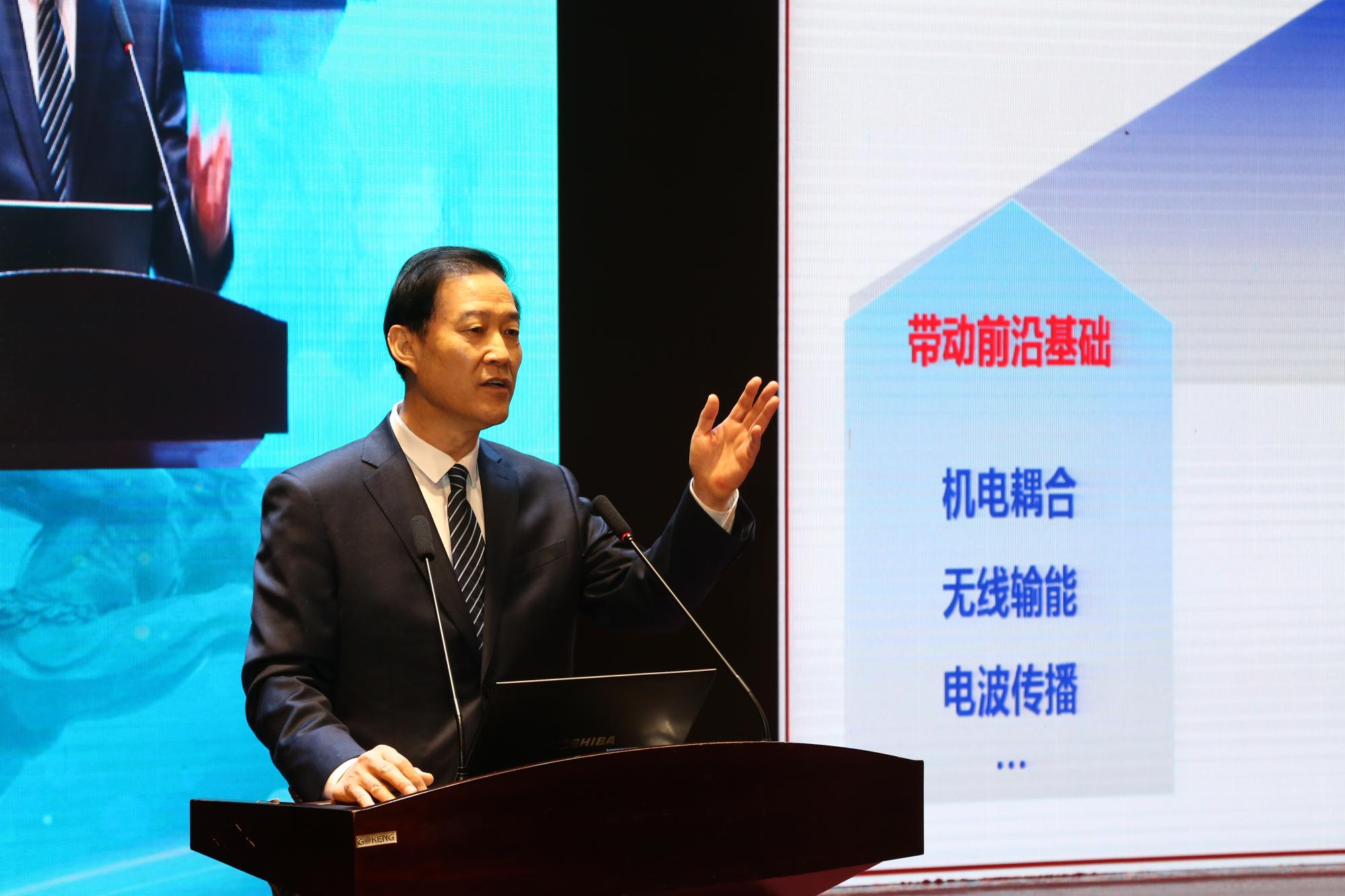 校长杨宗凯在启动仪式上发表致辞,他代表学校向“逐日工程”的启动表示祝贺,向出席仪式和论坛的各位领导、专家和来宾表示热烈欢迎,向各级领导、专家对学校大力支持、高度肯定和充分信任表示衷心的感谢。杨宗凯指出,空间太阳能电站作为国家战略基础设施,是航天技术服务国民经济和国家安全急需的一项超级工程,是着眼于国家能源战略和人类福祉的一次深刻的能源革命。自2013年段宝岩院士和杨士中院士联名致信总书记,表达加强我国空间太阳能电站关键技术攻关的构想,得到总书记批示后。五年来,段宝岩院士带领团队,扎扎实实开展了系统性的研究工作,提出了功质比领先的“OMEGA”创新设计方案,全球首个全系统、全链路空间太阳能电站地面演示验证系统中心将落地西安。希望能够通过这个平台,进一步加强、深化与各位领导和专家的深度合作交流,共同携手,一起追逐科技强国的梦想,一起追逐太阳的磅礴力量,为创造人类更加美好的未来勇攀高峰、不断前行!
