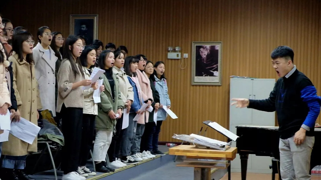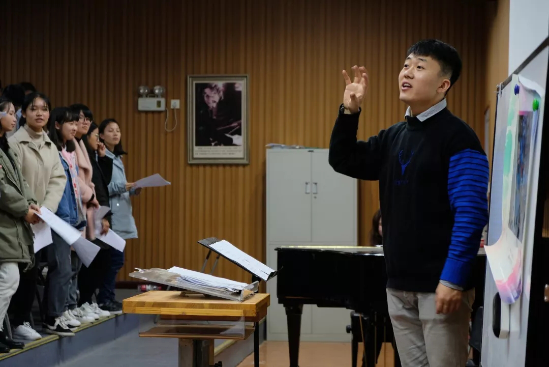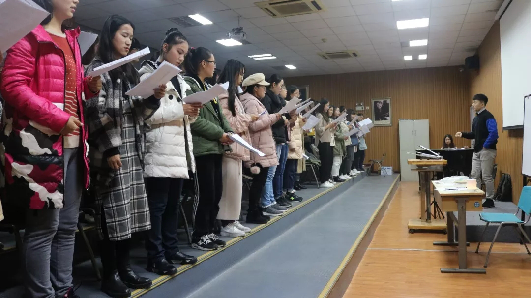 在合唱队选拔阶段,同学们踊跃报名参加,现场歌声随钢琴的弹奏高低起伏、停顿转折,令人沉醉其中。最终一百余名同学加入3499cc拉斯维加斯合唱队,并划分了男高音、男中音、女高音、女中音四个声部。
