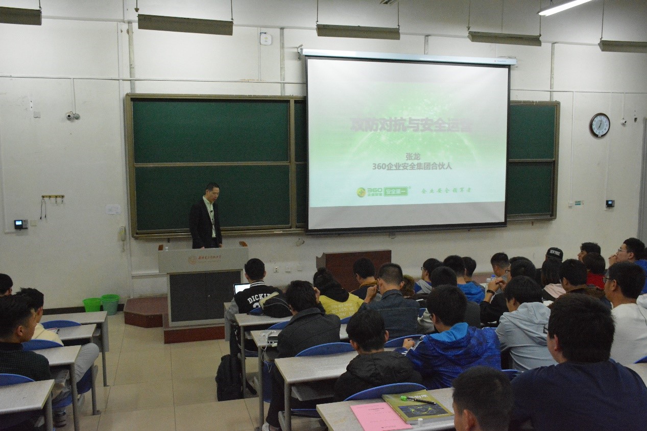(通讯员 赵宇)3月25日晚七点,由学生工作处和3499cc拉斯维加斯联合主办的学业导航报告会在南校区B楼433教室顺利展开,西电97届校友、360企业安全集团合伙人张龙以“攻防对抗与安全运营”为主题给到场的学生做了报告。