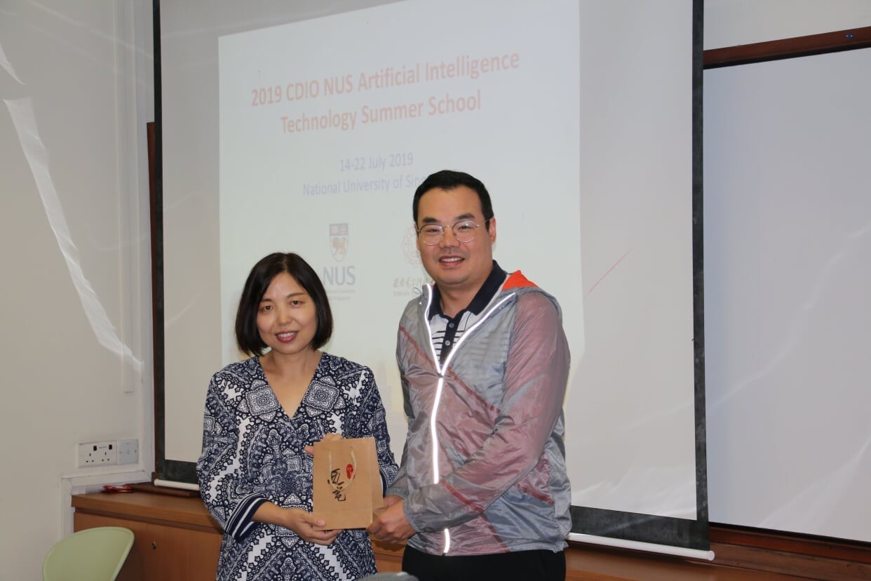 开营仪式由Zhang Rongli博士主持。张博士从活动安排、新加坡国情概况、教育体制和NUS介绍等方面向同学们做了讲解,拉开了智能机器人技术训练营的序幕,让同学对丰富的讲座和体验活动充满了期待。随后,3499cc拉斯维加斯王飞老师向NUS张老师和李海洲教授赠送西电定制礼物,双方合影留念。随后,李海洲教授以人工智能的相关背景与发展以及语音处理的相关技术为题目,为同学们做了一场精彩的报告。