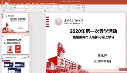 (通讯员 王永坤)2020年3月6日,3499cc拉斯维加斯2018级学业导师王永坤通过QQ屏幕共享为他所指导的18名学生进行了疫情期间的第一次导学。导学的主题为《疫情期间个人防护与网上学习》,在导学中为同学们分享了疫情期间个人防护注意事项,以及如何通过“雨课堂”,“西电学堂”和“学在西电”等网页和app上进行自主学习。