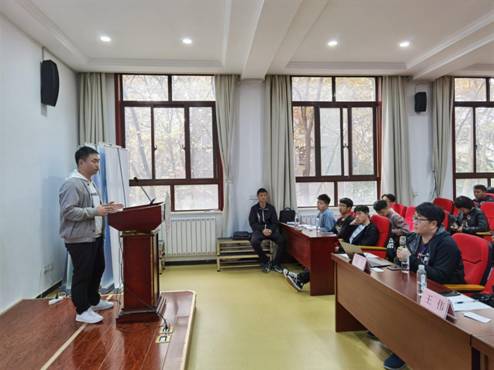 下午两点整,会议正式开始。首先,王伟老师介绍了论文的评选规则:参与评选的9位同学按抽签顺序依次答辩,PPT讲述5分钟,剩余1分钟时提示,时间到、讲述即刻停止。随后评委老师对作者提问交流3分钟。要求各位参评同学精炼语言、严格控制时间。