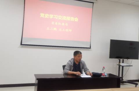随后,王二鹏以自己在党史学习中的收获和理解进行了汇报交流。首先,他强调了学习党史的重要性,作为一名党员要在党为党、在党言党,不忘初心,牢记使命。然后,他讲解了党史学习中应该把握的三个阶段,并重点讲述了七届二中全会之前这一阶段的党史学习。他从《共产党宣言》和“巴黎公社”讲起,简述了十八世纪末至十九世纪初的世界共产主义革命浪潮。结合当时社会情况,从“辛亥革命”到“新文化运动”等一系列革新运动,阐述了“中国选择了马列主义”的根本原因。从中共一大开始,以党的历次代表大会的代表人数、全党人数、重要事件等方面详细讲述了中国共产党百年成长与发展史。最后,他将自己在党史学习中的心得体会与大家进行了分享与交流,与大家共勉。王二鹏的党史学习交流讲述生动、内容全面,激发了大家在建党一百周年之际学党史、悟初心、担使命的热情和决心。