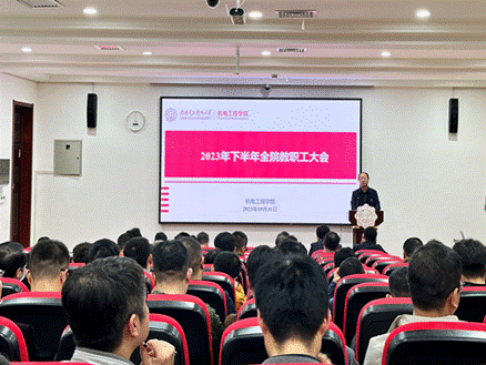 执行院长黄进首先对学院2023年上半年主要工作进行了回顾,通过分析考核指标完成情况对人才培养、科学研究、师资队伍建设、国际化工作等方面的工作进展进行了详细说明,对学院已取得的成果给予了肯定,对存在的短板弱项进行了深入细致的分析。随后,他对学院下一阶段的重点工作进行了全面部署。他讲到,要坚持和加强党的全面领导,紧紧围绕审核评估专项工作,在“三全育人”综合改革、一流专业和核心课程建设、学位点评估、一流科技创新力量组建、人才队伍提升等方面继续发力,不断强化国际化、校友、管理服务和安全工作对学院事业发展的支撑作用,持续开创学院高质量发展的新局面。