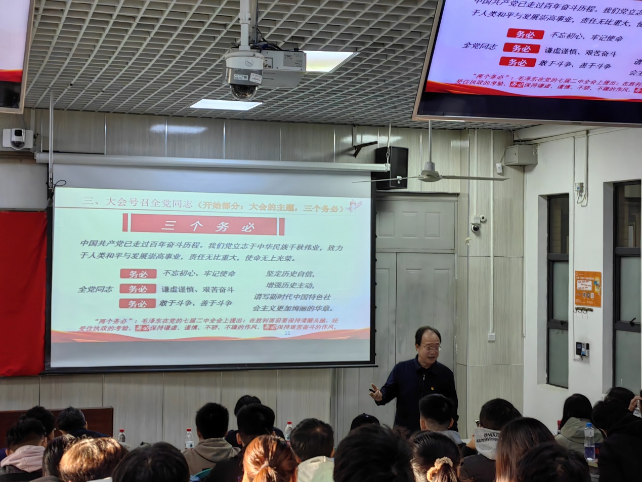 通过观看央视新闻宣传视频《新征程是充满光荣和梦想的远征》,梁书记引出了本次党课的核心思想:学习二十大,永远跟党走。 在党课上,梁书记向大家解释了中国特色社会主义伟大旗帜的内涵,强调伟大旗帜指引下的中国发展与中华民族振兴的紧密联系。梁书记还向积极分子展示了过去五年的重大成就和挑战,指出学习贯彻党的二十大精神,要牢牢把握过去5年工作和新时代10年伟大变革的重大意义,牢牢把握习近平新时代中国特色社会主义思想的世界观和方法论,牢牢把握以中国式现代化推进中华民族伟大复兴的使命任务,牢牢把握以伟大自我革命引领伟大社会革命的重要要求,牢牢把握团结奋斗的时代要求。 新的赶考之路上,时代是出卷人,我们党是答卷人,人民群众是阅卷人。在党课的尾声,梁书记告诉积极分子,第二个百年奋斗目标需要我们这一代青年人展现担当与作为,无论过去、现在还是未来,中国青年始终是实现中华民族伟大复兴的先锋力量。历史的延续、文明的传承、事业的开创正需要一代又一代青年不懈奋斗。这在积极分子中引起了强烈的反响,学员们进一步认识到作为新时代青年人,要担当时代责任,不畏艰难险阻,发扬逢山开路,遇水架桥的克难精神,以史为鉴、开创未来,让奋斗成为人生最亮丽的底色,用实际行动走好新时代的复兴路。 薪火传承,共铸梦想——“青春在新征程”