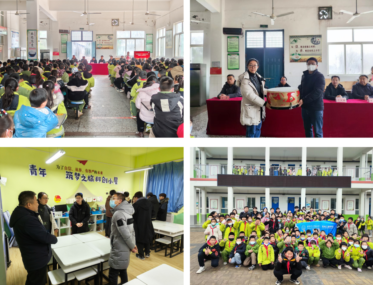 14日上午,学院一行首先来到龙池镇中心小学,伴着庄严肃穆的国歌,爱国主义教育专题报告会和乡村教育帮扶活动在小学召开,蒲城县委常委、副县长田雨,学院党委副书记陈武,龙池镇中心小学校长许新鹏参加活动。许新鹏介绍了小学的办学情况,并对学院师生一行的到来表示热烈欢迎。活动现场,包森纪念馆李水泉老师为同学们讲解抗日名将、民族英雄包森的英勇事迹,结合爱国名人事迹让同学们真切感受到爱国的重要性,李老师生动的事迹讲解深深地感染了同学们,赢得同学们的阵阵掌声。陈武在会上表示,今天与同学们一起参加包森英雄事迹爱国主义教育报告会,深感革命胜利来之不易、和平发展来之不易以及当下的幸福生活来之不易,鼓励同学们要珍惜大好的学习时光,勤奋学习,不辜负社会以及学校对大家的关爱和支持,树立远大的理想与目标,将来把祖国建设的更加强大,更加美丽。陈武代表学院邀请龙池镇中心小学的师生到西电来参观研学,沉浸式体验高校丰富多彩的校园生活。田雨强调,今天大家一起聆听了李水泉老师所作的报告,再次感受了英雄的感人事迹。他勉励同学们要把握当下的学习条件与机遇,书山有路勤为径,学海无涯苦作舟,要读万卷书、行万里路,好好学习,天天向上,不断积累学识、增长见识,做新时代好少年,为实现第二个百年奋斗目标贡献自己的一份力量。
