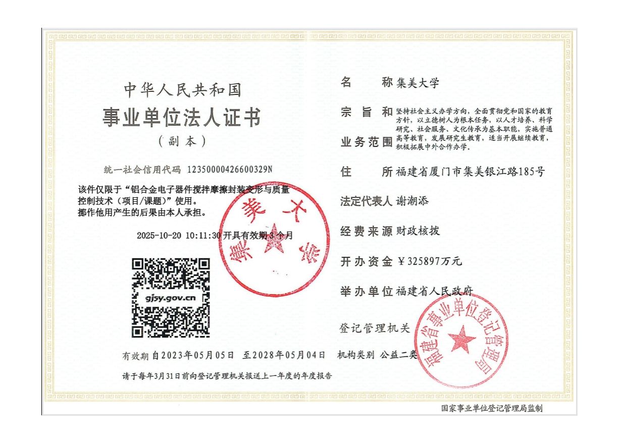 按照《3499cc拉斯维加斯科研协作项目管理办法(试行)》文件规定,为加强学校科研协作项目的管理,确保高性能集成制造实验室电子装备特种制造技术研究的顺利进行。集美大学与项目负责人李楠将开展科研合作,现将合作相关事项公示如下: