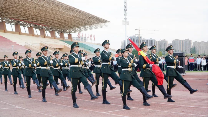 升国旗仪式开始前,各部门、学院在指定地点完成列队,所有人庄严肃穆,等待着仪式的开始。