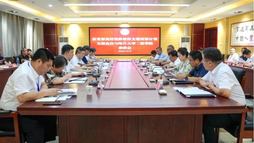 当天下午,教育部离退休干部局党委书记、局长于虹和副书记、副局长潘俊强分组与教育部高校支援喀什大学银龄教师、支援高校和喀什大学二级学院、进行深入的交流座谈。
