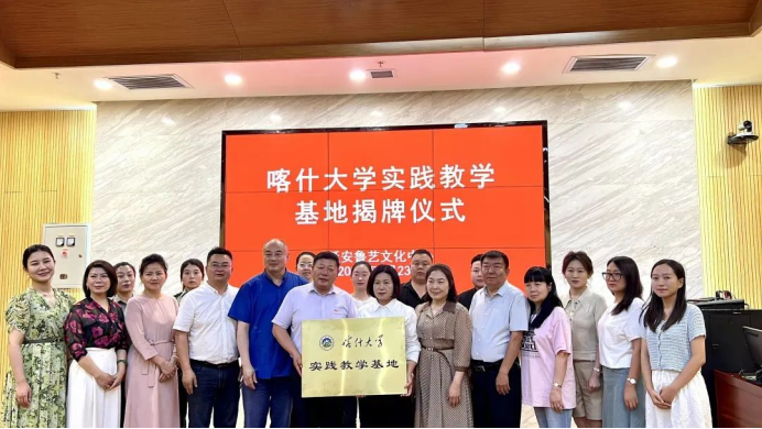 仪式上,喀什大学党委常委、宣传部部长丛培兵与延安鲁艺文化中心主任刘妮共同为实践教学基地揭牌,并与延安鲁艺文化中心副主任侯海成签订了合作协议。