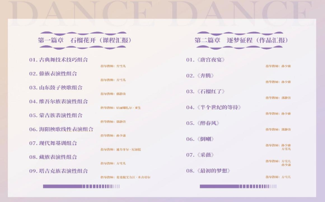 晚会由第一篇章石榴花开(课程汇报),第二篇章筑梦征程(作品汇报)两部分组成。