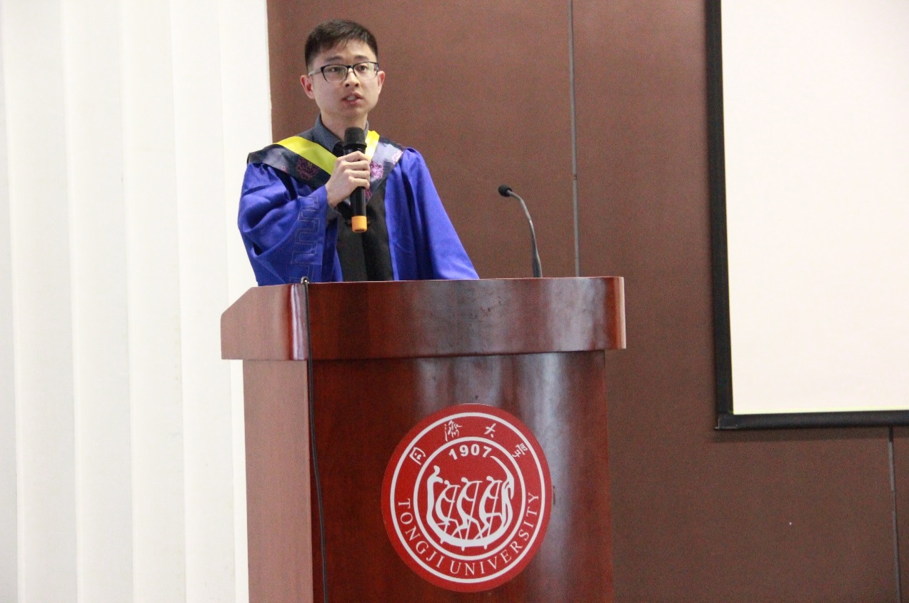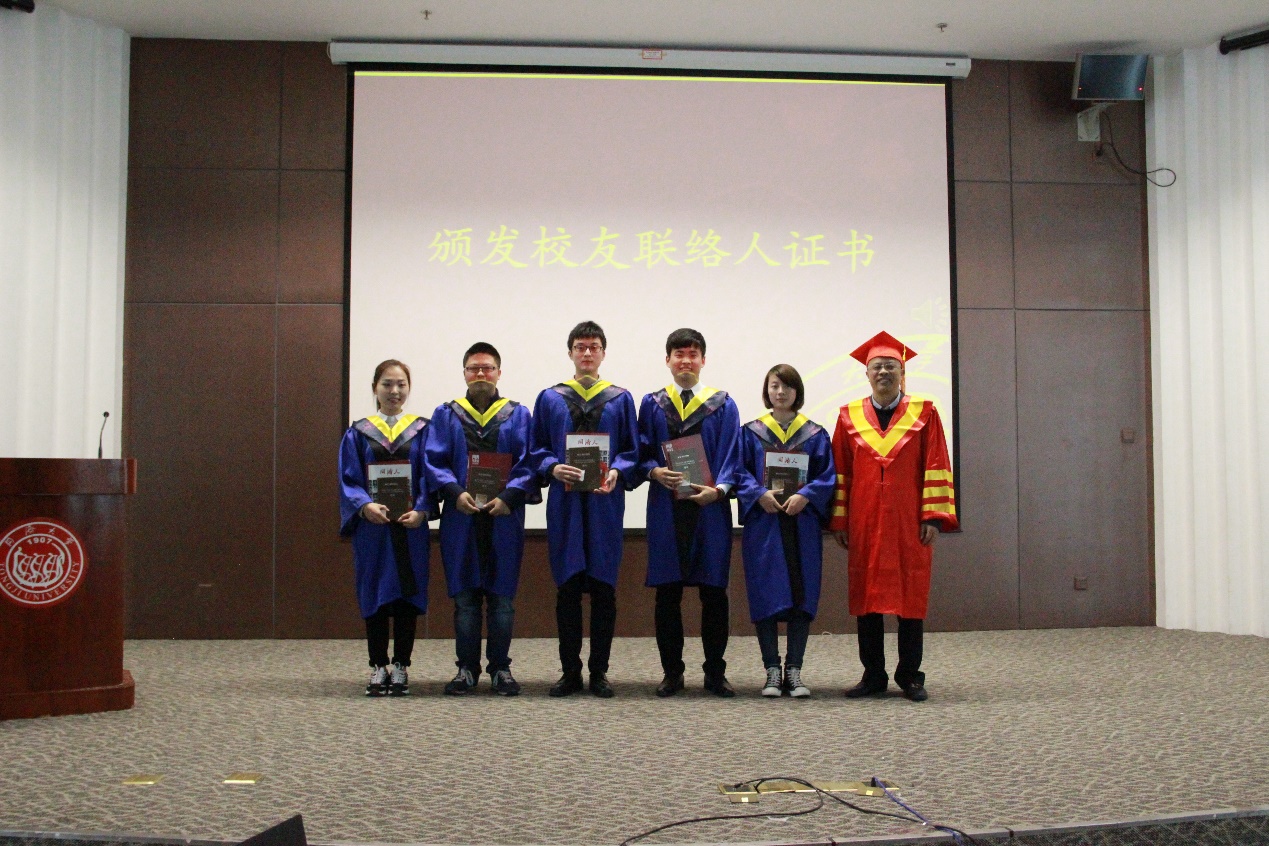 在会上,楼狄明教授作为导师代表首先对同学们顺利毕业表示祝贺,在肯定硕士毕业生的学术水平与科研成果的同时,表达了对毕业生的不舍之情。楼教授还希望大家既要学会学习,不断给自己充电,更要学会学以致用,让自己放电,只有释放自己的才华和本领才能有所成就,有所收获。上海市优秀毕业生郭石磊作为毕业生代表对汽车学院两年半以来的悉心培养表示衷心的感谢,并分享了自己的研究生学习生活的点滴,字里行间流露着对学院和同学们的深厚感情。同时为了让毕业生们能够和学院保持联络并经常回“嘉”看看,学院还给校友联络人颁发了证书。