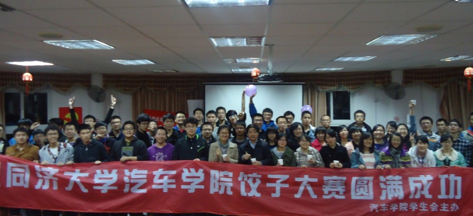 2012年11月20日晚上,同济大学汽车学院学生会举办了包饺子大赛。学工办徐夏平老师,葛畅老师,刘向老师,学生会主席赵汉卿,实践部长赵文天和12级80多名同学相聚在西南八二楼活动室,开展了丰富多彩的活动。