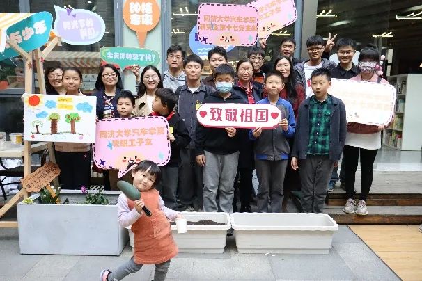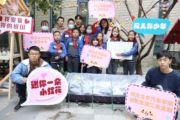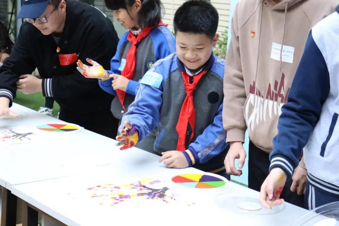实践篇中,同济大学汽车学院研究生第一、二、三、十七党支部学生党员与来自同济大学第一附属中学、同济大学附属实验中学、同济大学附属实验小学以及汽车学院工会的中小学生们结对参与了一系列劳动实践活动。中小学生代表与学生支部党员代表在纸上共同按下五彩的专属手印,完成结对仪式。