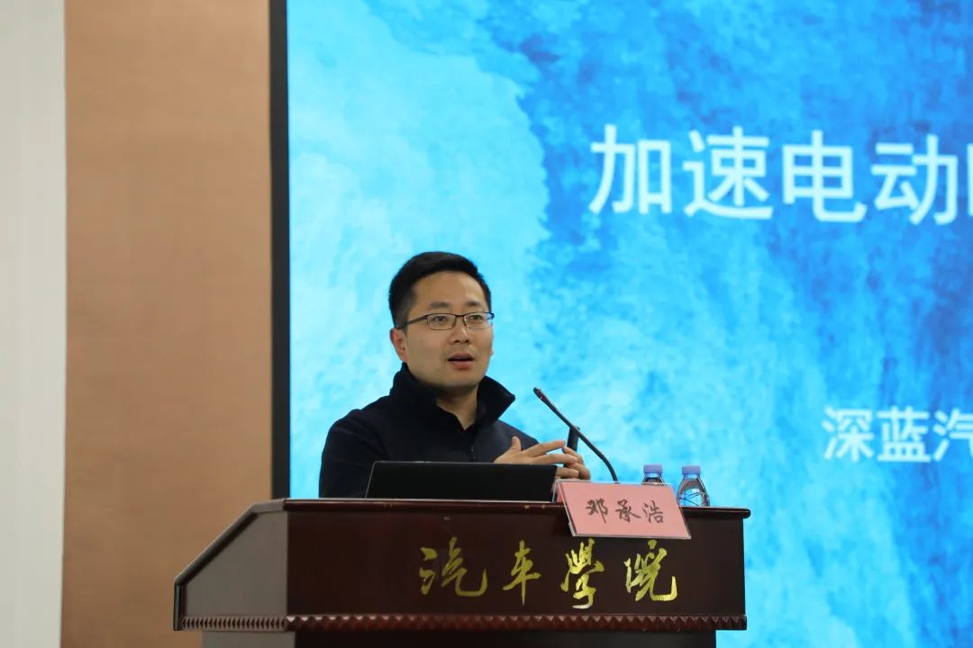2023年4月21日,第七十四期“同车行”大讲堂在新能源汽车工程中心报告厅顺利举行。高级工程师、现任深蓝汽车科技有限公司总经理,邓承浩进行了主题为“揭秘新能源,拥抱电动化”的报告。汽车学院党委副书记葛畅老师主持。