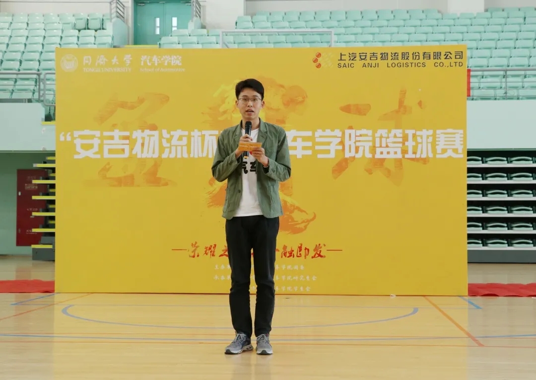 2020年10月20日中午,“上汽安吉物流杯”同济大学汽车学院第十八届篮球赛开幕式在嘉定校区体育馆内成功举行。同济大学汽车学院党委副书记、纪委书记邓俊,党委副书记李红,学工办副主任曹卢,团委书记王京晶,团委副书记杨正宇,以及来自23支本科生和研究生参赛队伍的100余名学生代表参与此次开幕式。
