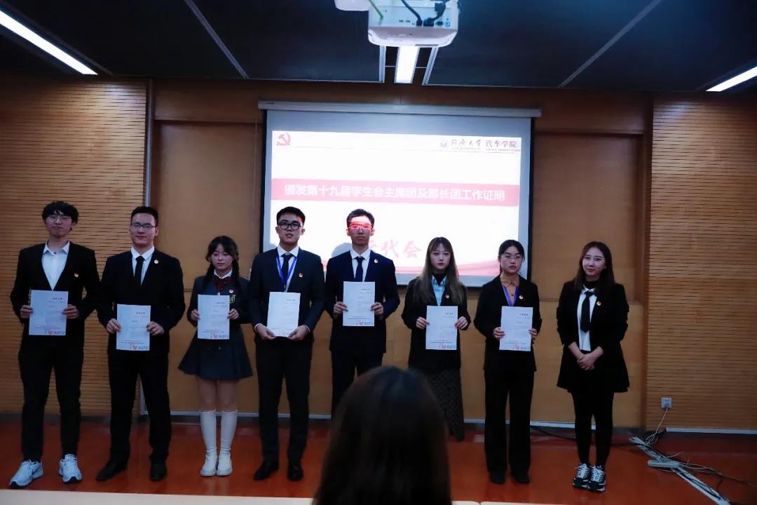 同济大学汽车学院第十九届学生会成员任职证明颁发及校学生会主席团成员致辞