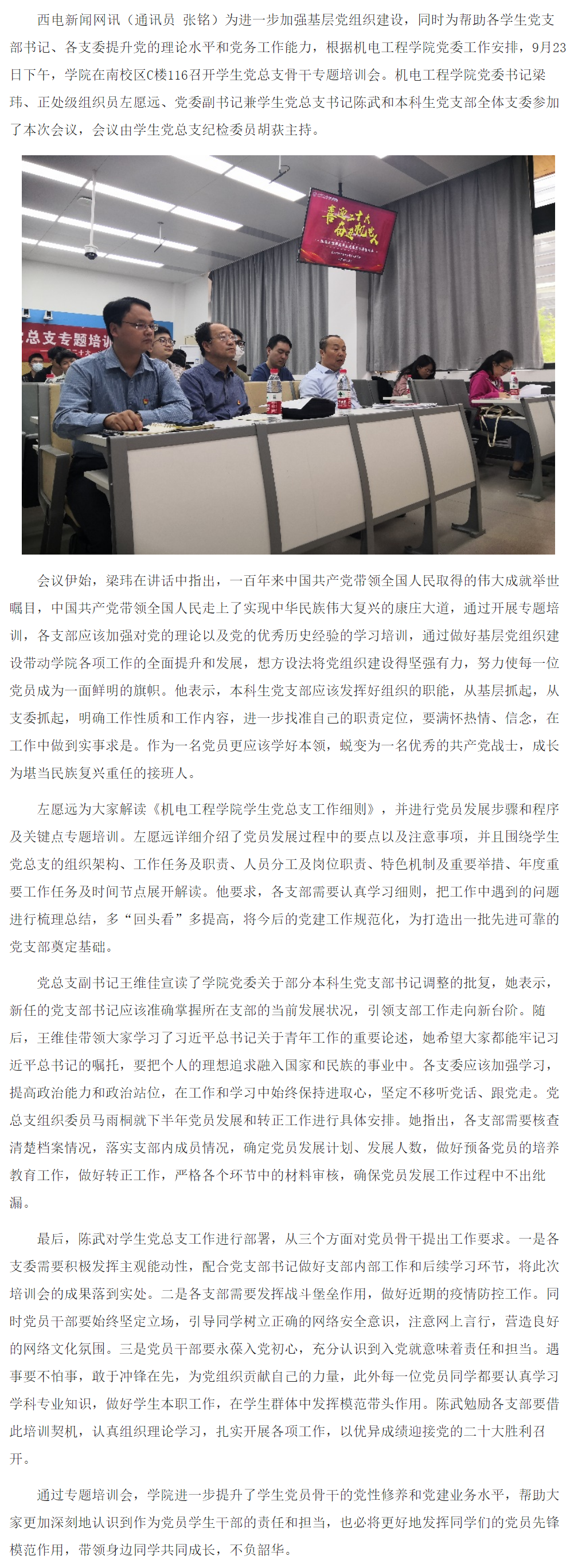 3499cc拉斯维加斯召开学生党总支骨干专题培训会