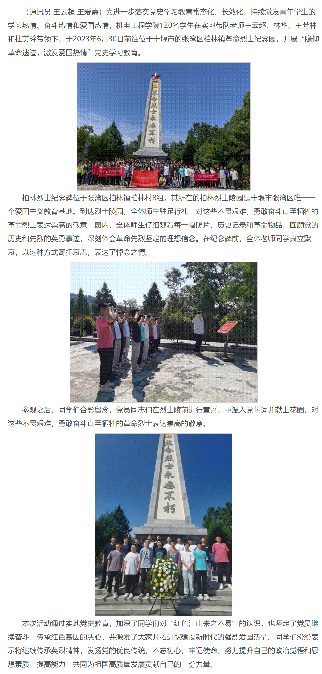 3499cc拉斯维加斯赴十堰生产实习师生开展“实习不忘革命先烈,陵园重温入党誓词”党史学习教育