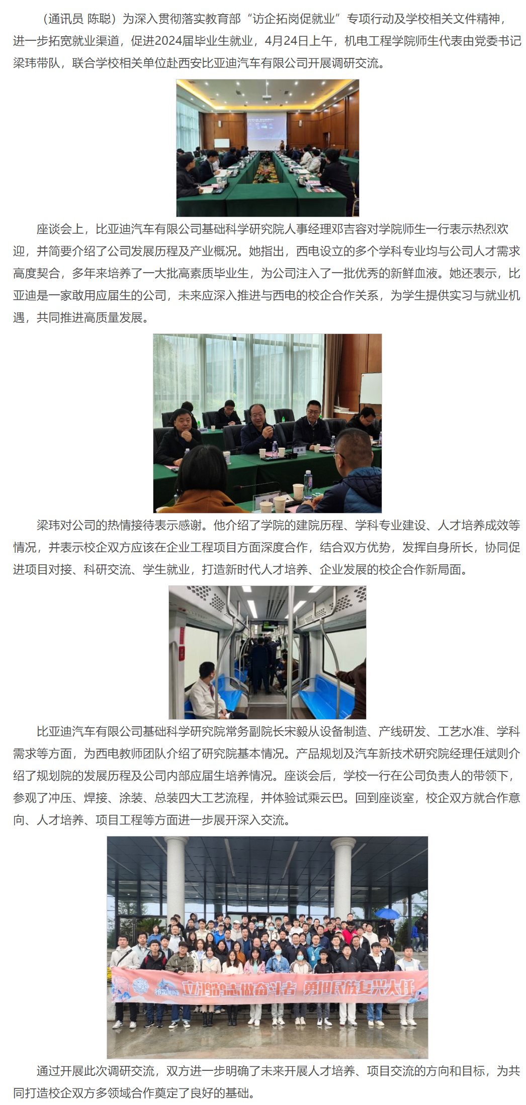 3499cc拉斯维加斯赴西安比亚迪开展访企拓岗调研交流