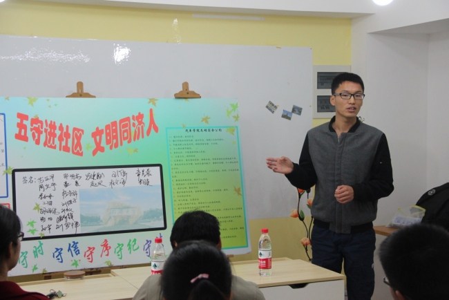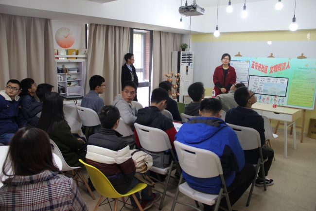 随后,范亚军同学向在座学生党员介绍了本次“五守”进社区系列活动的具体内容,活动主要包括“21天习惯养成计划”、“宿舍文明公约我来守”以及“五守主题优秀作品征集”等三个环节。通过督促同学们坚持21天早起,并完成自己的预期目标,帮助同学们养成良好的习惯;党员带头签署宿舍文明公约,在学生社区中掀起做文明同济人的氛围;并且在学习之余,创造宣传“五守”的优秀作品,更好地推动“五守”在同学中的影响。
