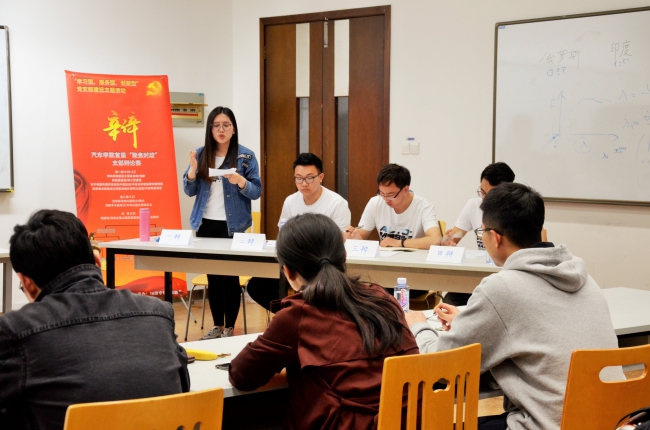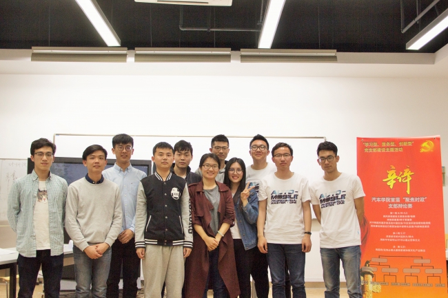 为深入开展“学习型、服务型、创新型”党支部建设,4月19日晚18:30,由汽车学院党委主办,2016级专硕一支部承办的首届“聚焦时政”辩论赛开幕赛在学院B208顺利举行。比赛特邀学院学工办主任葛畅老师、15级专硕二支部支委夏士翔以及16级专硕二支部党支部书记李二峰担任评委。