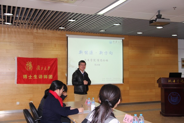 论坛首先由史成宇老师致开幕词。他对复旦大学博士生的到来表示了热切欢迎,肯定了“博思”论坛的平台性示范作用。同时,史老师表达了对本次主题的浓厚兴趣,希望本次论坛能够有助于探寻保证能源安全、解决能源危机的多元化方案。随后,两位优秀的博士生分别对各自的研究课题做了专业严谨的讲解。