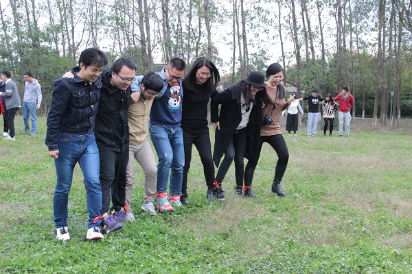 下午,同学们前往南湖公园开展素质拓展活动。同学们首先通过抽签组成完整的毛主席诗句完成了分组,将素拓成员分为4组,各个小组分别演唱了红歌,展现了小组的精神面貌并且活跃了气氛。在主持人的带领下,大家先进行了“逢X报数”和“蛙跳水”两个热场小游戏,随后,素质拓展活动的正式游戏环节开始。首先进行的是“七人八足”比赛,四支队伍在赛前充分磨合,在正式比赛中发挥了超强的实力,记录一再被打破,各个队伍充分展示了团结合作的拼搏精神和团队凝聚力,比赛的胜负已显得并不那么重要。之后的“南辕北辙”更将现场氛围推向高潮。游戏中,每两个人互为搭档,其中一人蒙上眼罩,另一人跟在其后确保安全,戴眼罩的同学需要凭借记忆和搭档的引导前往场地末端的党旗所在处。在游戏中,大家坚定地朝着党旗走去,象征着对党的坚定信念。