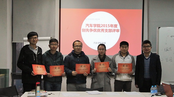 经老师评审和书记互评,2013级硕士专业型第二党支部、2014级硕士专业型第二党支部、2015级硕士学术型第一党支部、2012级本科生党支部以及2013级本科生党支部共5个支部被评为汽车学院2015年度“创先争优”优秀党支部。汽车学院党委副书记史成宇老师对此次各支部年度工作汇报和优秀党支部评选进行了总结,并针对如何根据《组织生活指导意见》系统设计和开展支部组织生活、如何更好地兼顾组织生活的教育性和同学参与度、对海外交流的党员思想教育工作如何开展等问题提出了建议,并对今后各支部的工作开展提出新的期望,鼓励未能入选的支部在新一年的工作中再接再厉。