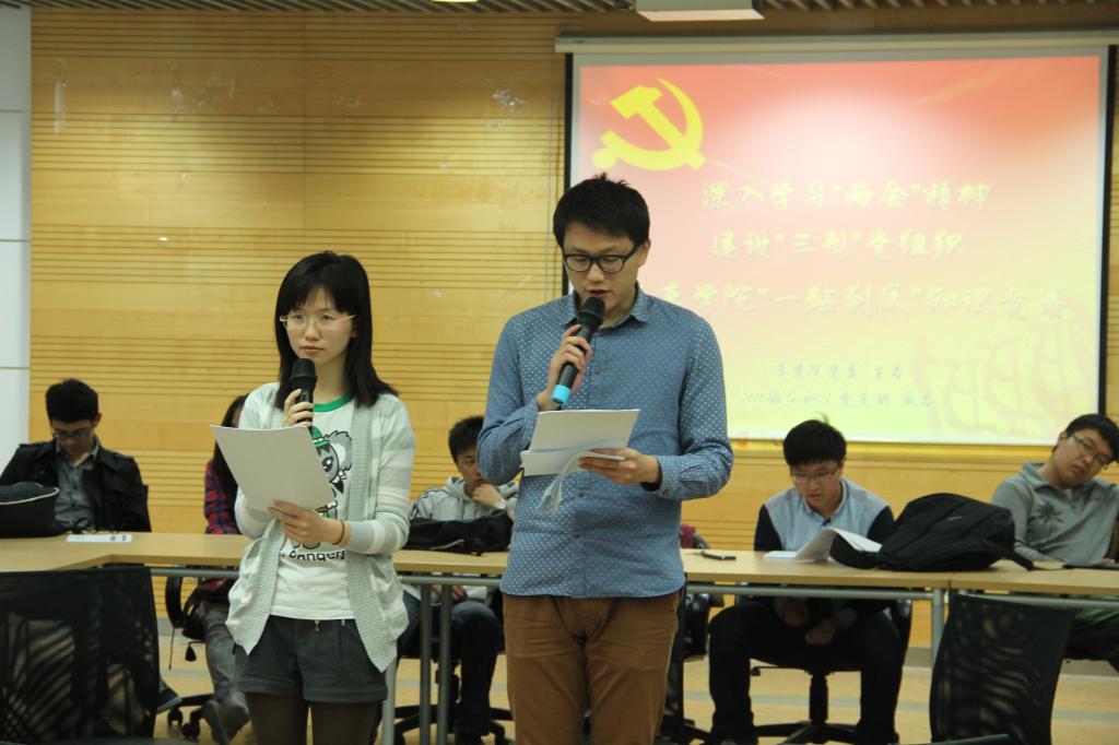 为庆祝两会胜利闭幕,号召学院学生关注两会,建设学习型、服务型、创新型“三型”党组织,同济大学汽车学院党总支于2014年5月6日在学院A311开展“深入学习‘两会’精神,建设‘三型’党组织汽车学院‘一站到底’知识竞赛”活动。来自学院本科生、研究生和博士生共13个党支部党员积极参加本次活动。