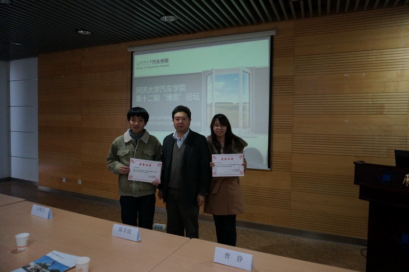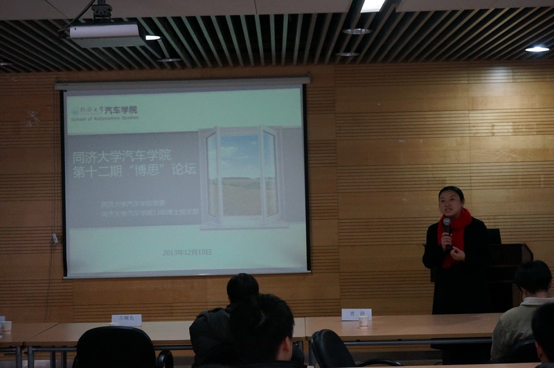 2013年12月10日下午,由汽车学院党委主办,汽车学院2013级博士支部承办的第十二期“博思”论坛在汽车学院A311正式拉开帷幕。本期“博思”论坛由12级博士金驰和13级博士邱娜作为主讲人,邀请汽车学院博士生导师陈辛波教授、左曙光教授作为点评嘉宾,汽车学院党委副书记曹静老师作为特约嘉宾出席本期论坛。