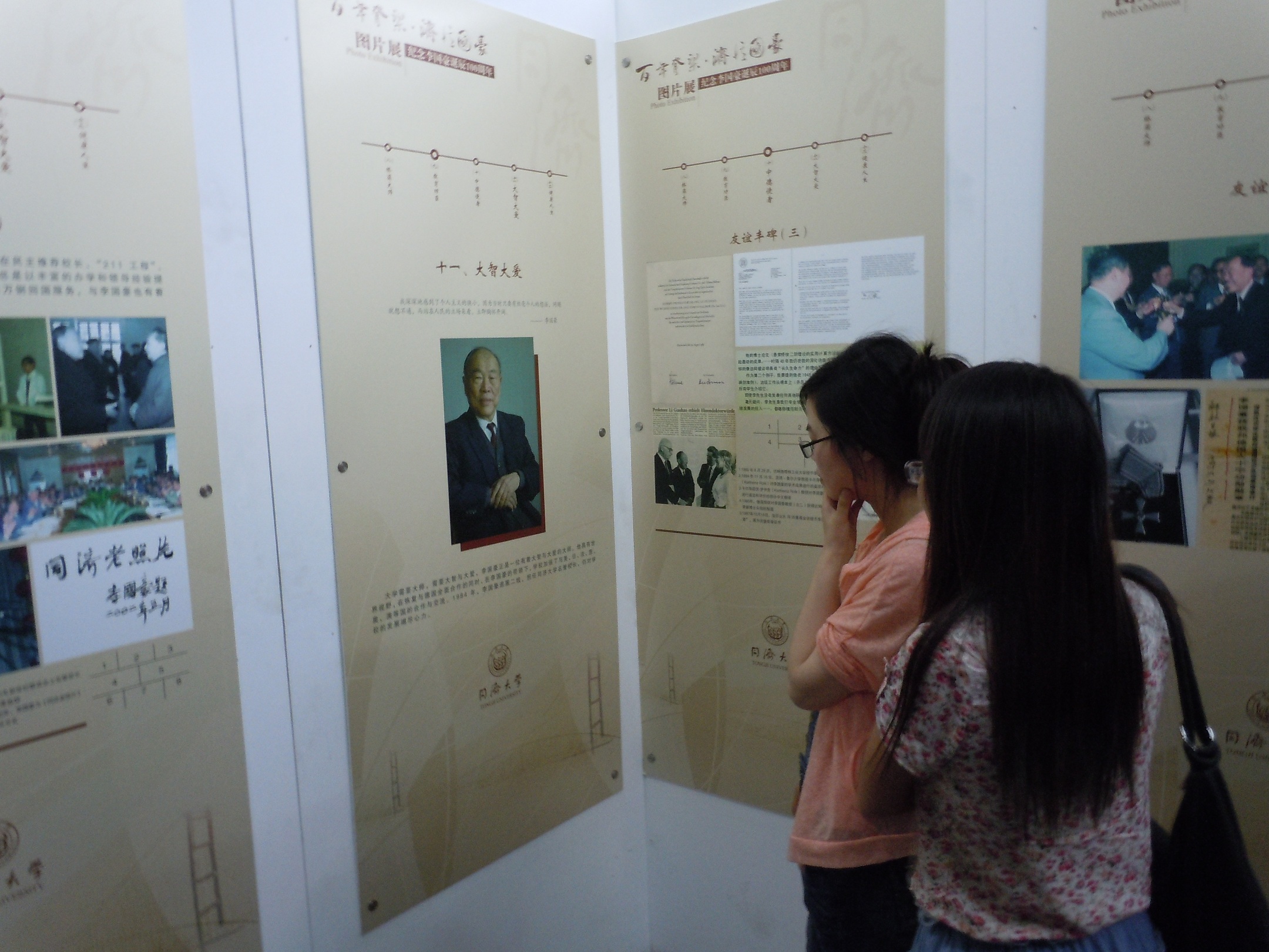 接下来,我们参观了嘉定校区图书馆的“纪念李国豪诞辰100周年”图片展,展览分为上下篇。上篇“济•忆”包括“客家少年”、“吴淞问学”、“风雨同舟”、“旅德生活”、“重返故园”、“逆境坎坷”、“掌校同济”等7个部分内容,下篇“国•豪”由“桥梁大师”、“教育功臣”、“中德使者”、“大智大爱”、“健康人生”等5个部分组成。