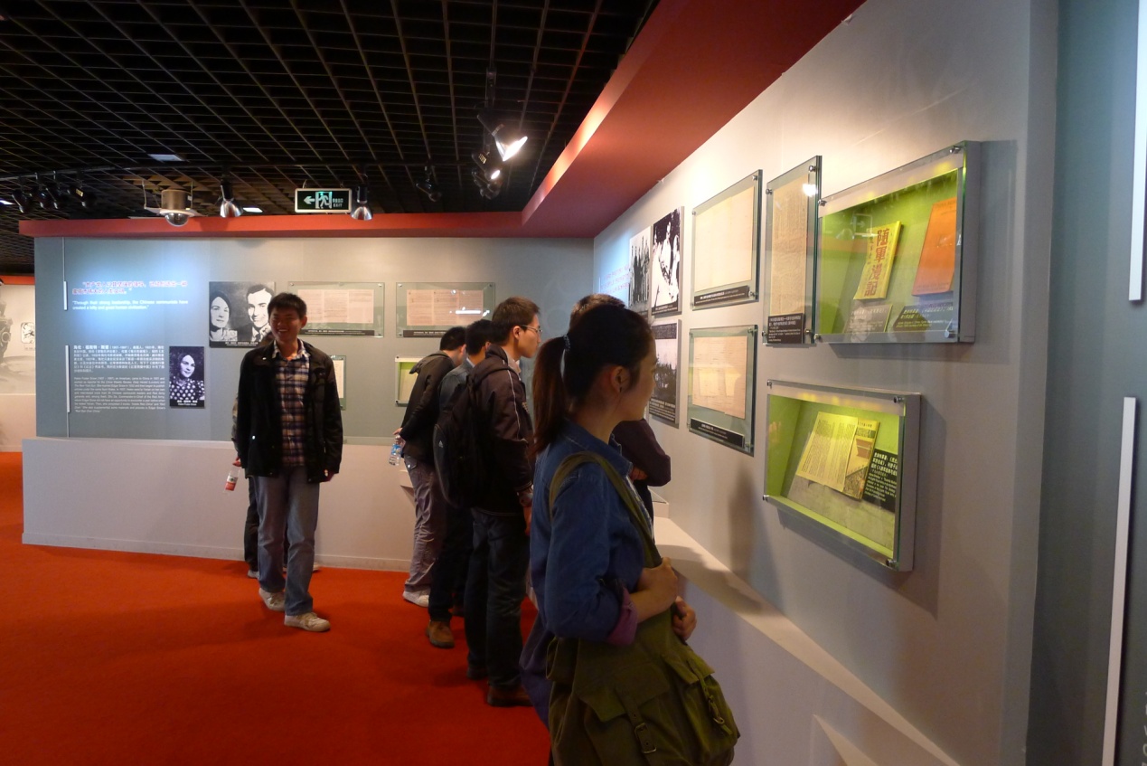 2013年4月13日下午,借着阳光明媚的好天气,汽车学院2012级专硕一支部组织参观了上海市档案馆。正值档案馆三楼的“红星照耀中国——外国记者眼中的中国共产党人”主题展对外开放。乘电梯来到三楼,首先映入眼帘的是鲜红的墙和耀眼的字:“红星照耀中国——外国记者眼中的中国共产党人”。记者是记录真相、阐述事实的神圣职业,那么隔着巨大的文化差异和语言障碍,外国记者是怎么记录我们共产党人的呢?参观的党员们,脸上都或多或少显露出了好奇与兴趣。