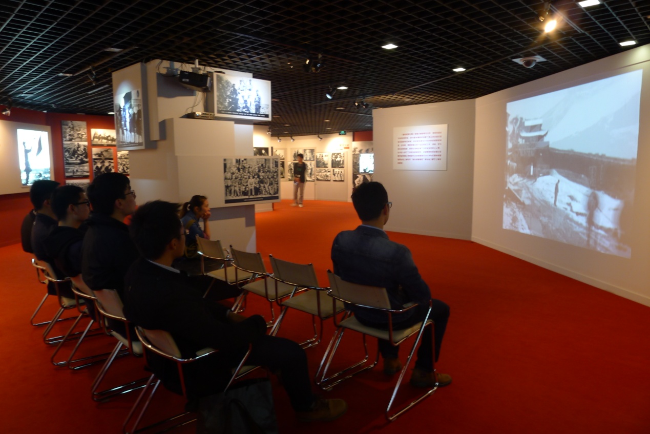 馆里收藏资料很丰富也十分珍贵。首先是对一些著名的外国记者们的介绍,并一同展出了他们拍摄的照片以及他们的机打或者手写的新闻稿。有抗大的课堂上学生认真听课的情景,有党的领导人发表演讲的盛况,也有许许多多延安军民的生活照片,操练的士兵、种地的农夫、挑水的青年、烧饭的妇女、嬉笑玩闹的孩子……照片都是以旁观者自然的角度拍摄,显得格外真实也尤其的具有表现力。正是这些外国记者,通过他们的真实报道和陆续出版的书籍,让世界知道在中国偏远的地区,有这么一只信仰坚定、作风优良的革命队伍;正是他们,也让我们有机会了解那段难忘的历史。党员们认真地观看一张张黑白图片,阅读每一段文字和一块块展板,走进了70多年前那段波澜壮阔的岁月。