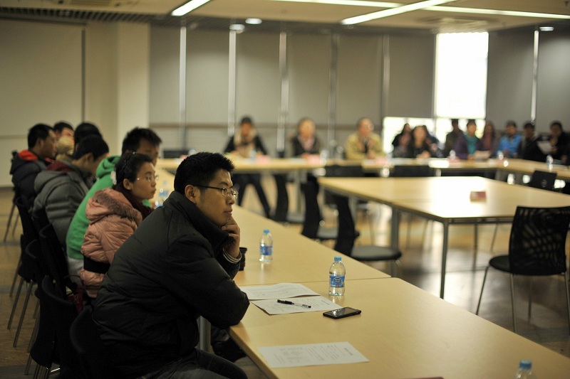 然后进行了群面模拟。由10名同学临时组成小组,黄先生现场给出群面题目,并限定30分钟的讨论时间。期间同学们积极发表个人观点,群面结束时由代表进行了英文总结陈述。最后黄先生和洪女士对群面中同学们的表现进行了点评。另外黄先生介绍了福特HR在群面时所要考核的重点,即应聘者对题目的观点、表达自己观点的方式以及在遇到不同意见时的应对方法。
