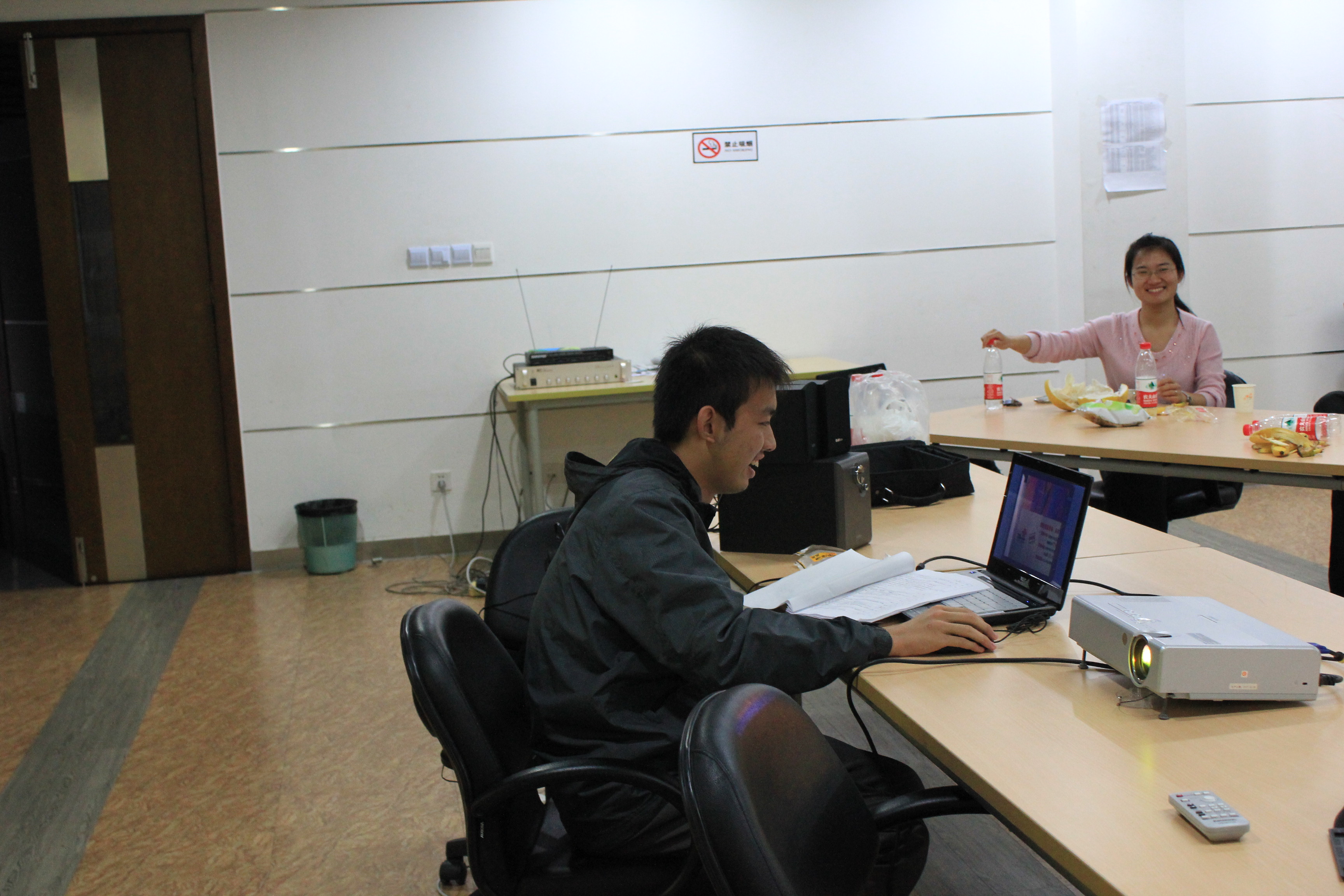 每个小组的同学完成任务后,到汽车学院A311休息,等待第二部分各组汇报成果。每个同学无不气喘吁吁、筋疲力尽,可见此次素质拓展的强度是很大的。在A311,工作人员早已买好了饮料水果零食来犒劳辛苦的同学们。同学们边享用美食,边交流素拓的感想、经验,现场气氛温馨和谐。