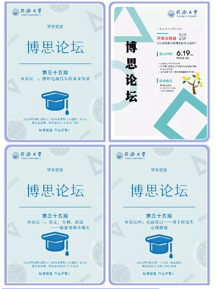 疫情期间,为丰富同学们的科研生活,由校党委研究生工作部、汽车学院党委主办的汽车学院第35期“博思”论坛分为四个分论坛分别进行, 分论坛一主题为“新能源汽车的未来发展”,由研究生第九党支部承办;分论坛二主题为“论文写作与术业专攻”,由研究生第十党支部承办;分论坛三主题为“论文与会议——学术大爆炸”,由研究生第十一党支部承办;分论坛四主题为“博士研究生心理健康教育论坛”,由研究生第十四党支部承办。